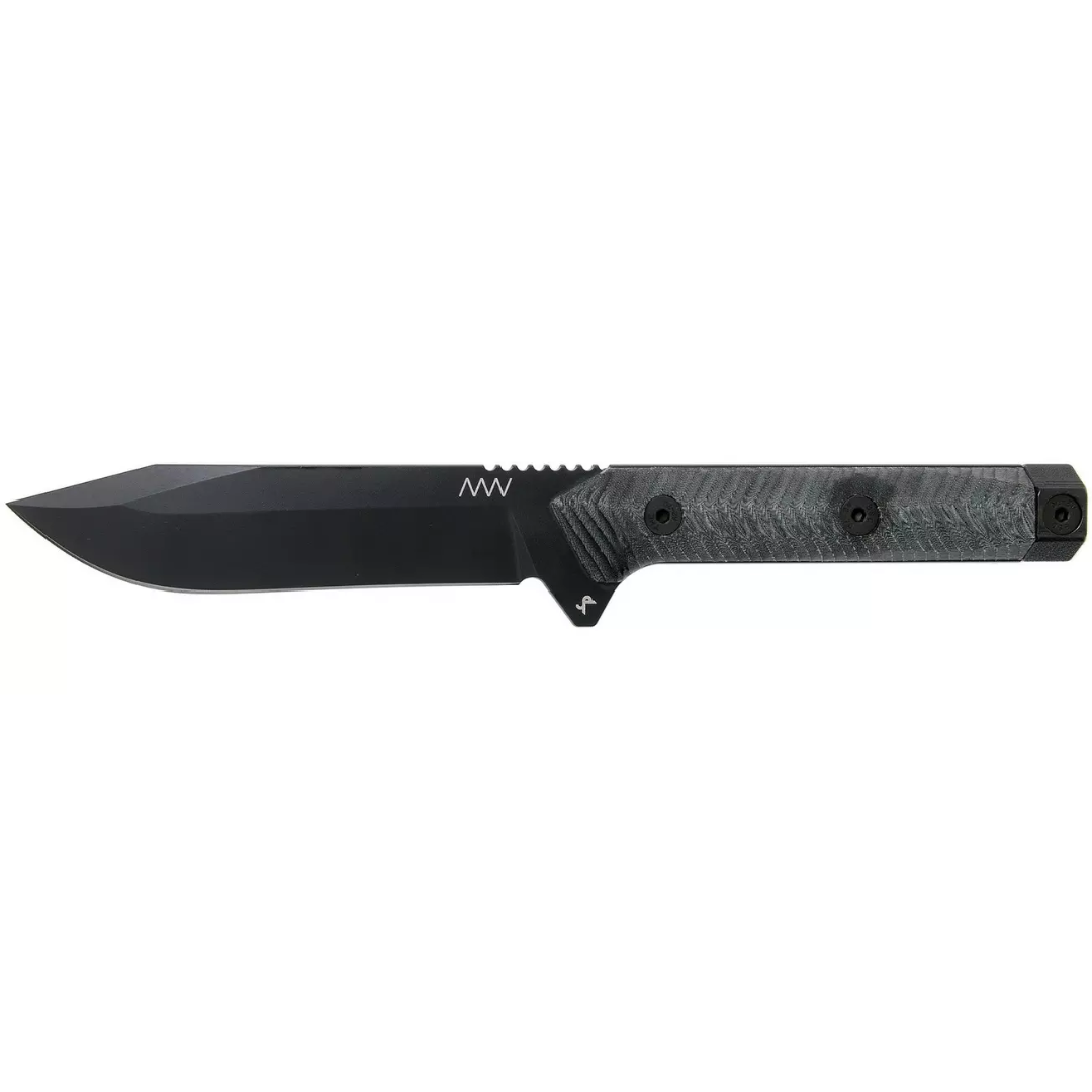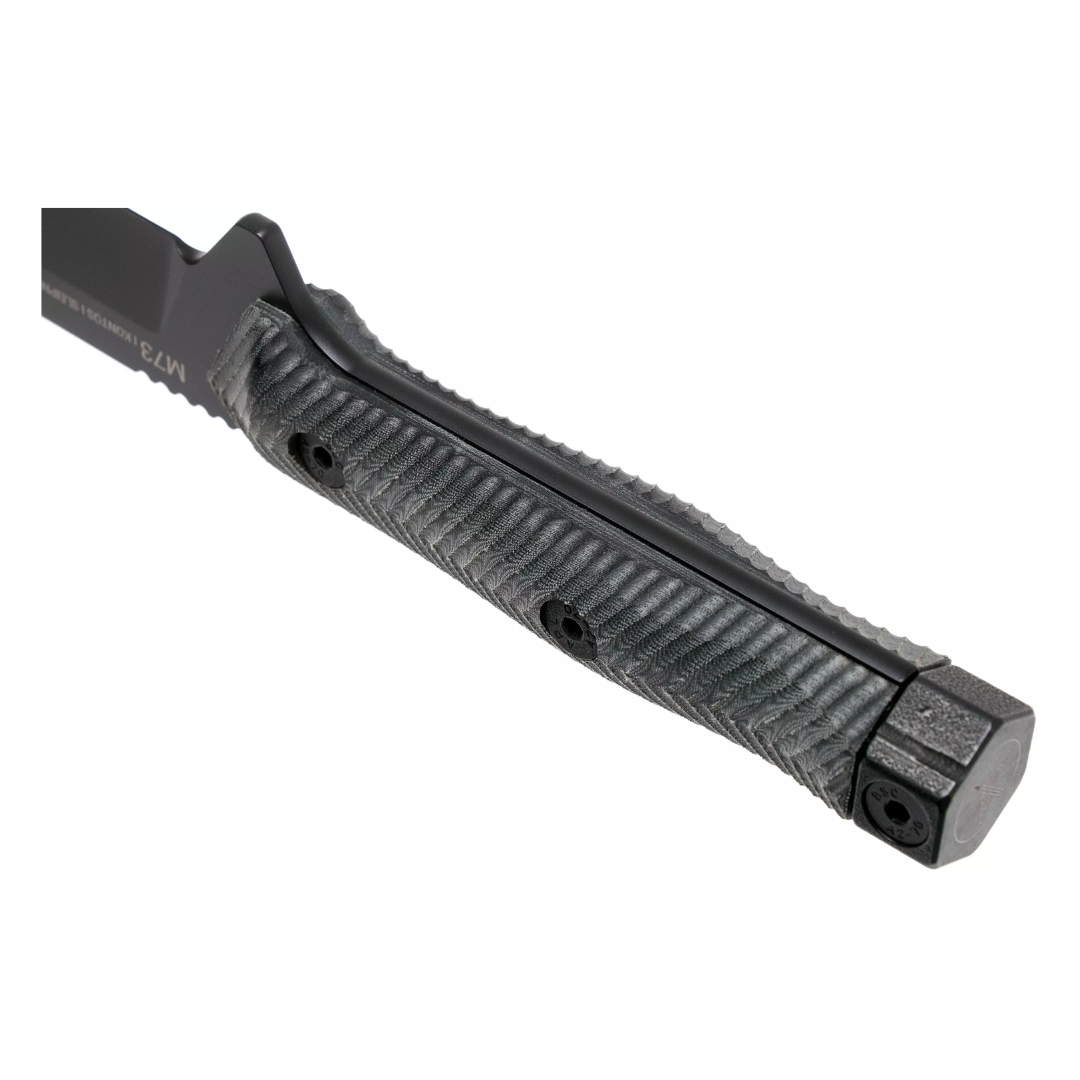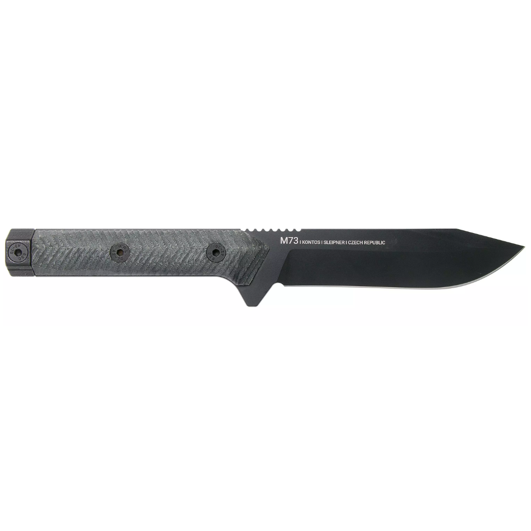 The ANV M73 KONTOS is a robust fixed-blade knife engineered for demanding tactical and survival applications. Crafted in the Czech Republic, it features a 4.9-inch Sleipner steel blade with a Cerakote black coating, offering exceptional durability and corrosion resistance while minimizing reflections. The 3D-milled black Micarta handle ensures a secure grip in all conditions, and the self-locking Kydex sheath with MOLLE compatibility provides versatile and secure carry options.