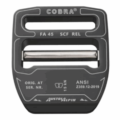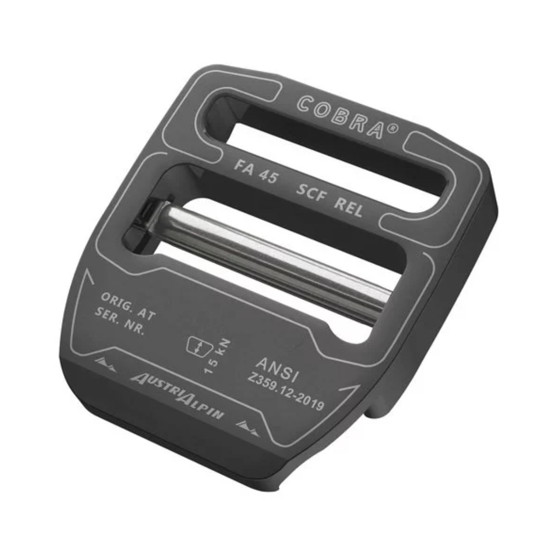 The COBRAFRAME 18 kN thread back buckle made of aluminium with stainless-steel adjuster bar and Easy Release Function for extra fast thumb tab release complies with the ANSI Z359.12-2019 standard and convinces with a guaranteed tensile strength of 15 kN. However, we guarantee 18 kN and point this out in the technical specifications accordingly. Stretch version for perfect function with thicker webbings.