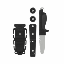Equipped with a titanium-coated stainless steel blade, the TANU knife features both straight and serrated edges along with an integrated line cutter. The ergonomic handle provides a secure grip even when wet, while the locking sheath and included BCD adapter ensure your knife is always close at hand during dives or aquatic operations.